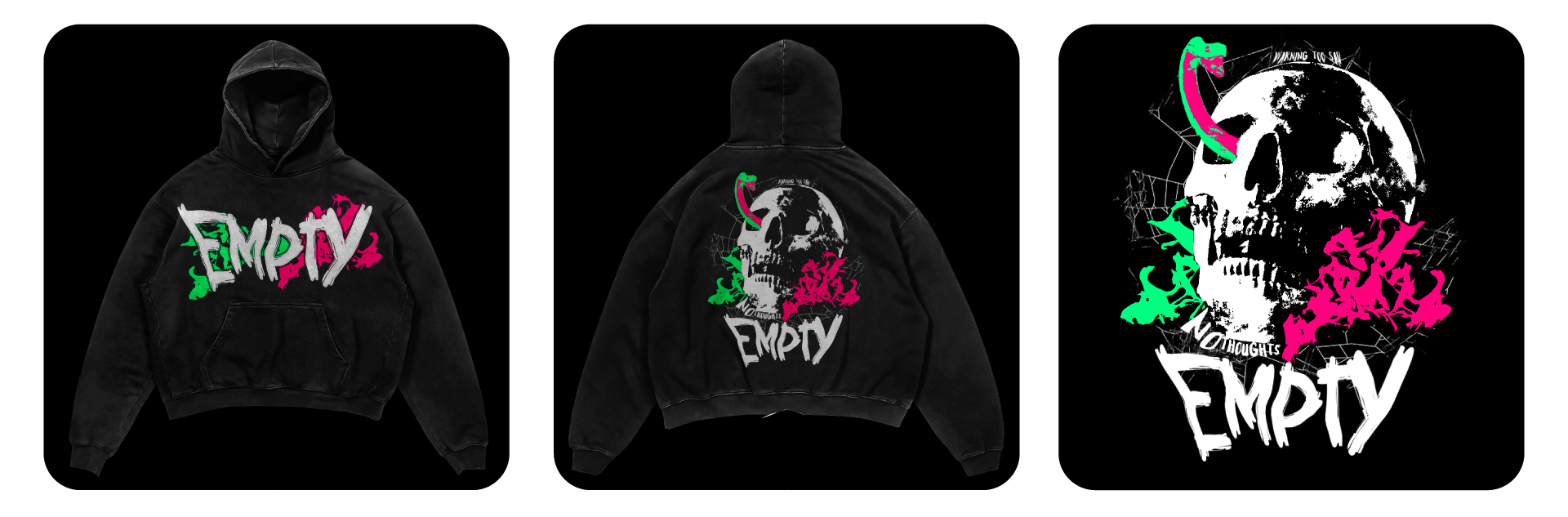 Hoodie design for personal brand “Unknown Emotions”. Made in Adobe Photoshop with royalty free imagery/personal photography.