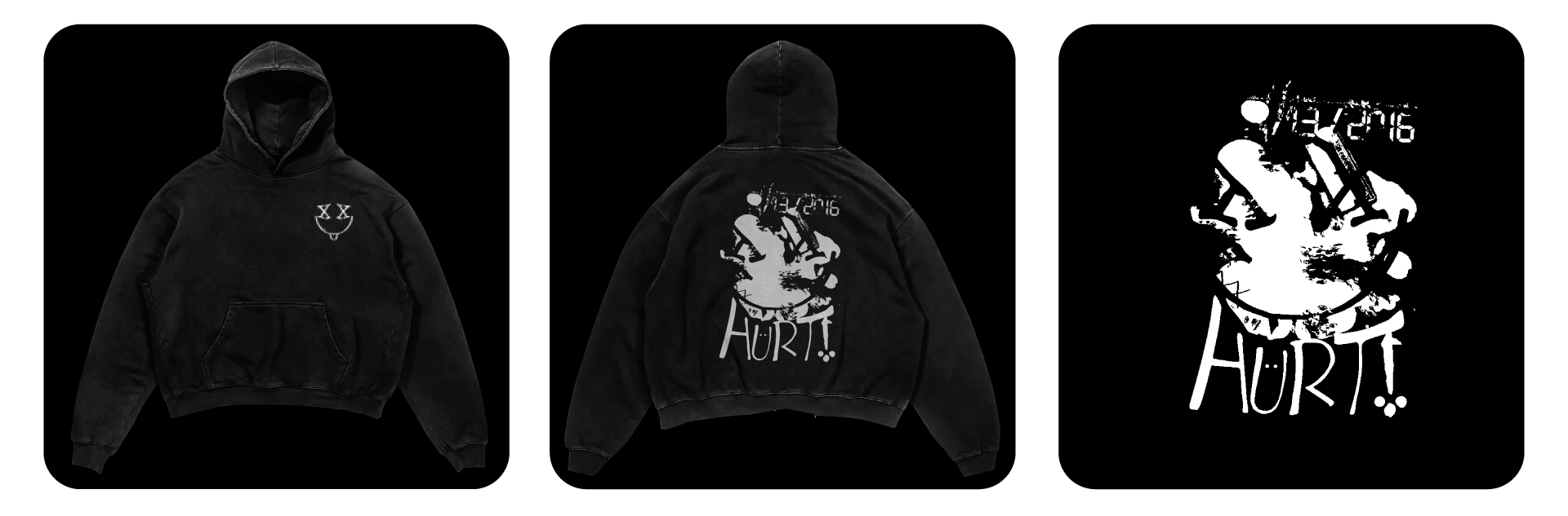 Hoodie design for personal brand “Unknown Emotions”. Made in Adobe Photoshop with royalty free imagery/personal photography.
